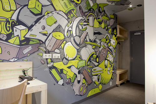 Salut les Artistes !!! Classiques ou Street-Art, Peintres ou Sculpteurs, Musiciens, Designers ou Ebénistes, ils sont mis en valeurs dans notre sélection de la semaine au coeur de maisons d’hôtes ou d’hôtels hauts en couleurs.Les couleurs, c’est de saison !… Oeuvre de Stom 500 pour le Graffalgar à Strasbourg. Cliché: Paola Guigou